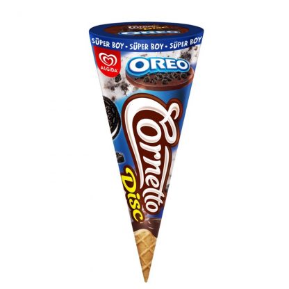 Deze cornetto is, ondanks de uitdaging van het opeten, echt mijn favoriet. Er zit bovenop een soort koekje van chocola met daarboven op Oreo kruimels. Dus voordat ik een hapje heb genomen liggen de kruimels overal. In het ijs zitten vervolgens stukjes oreo verwerkt, wat een geweldige uitvinding. Het is haast Ben en Jerry’s met een toevoeging. |
