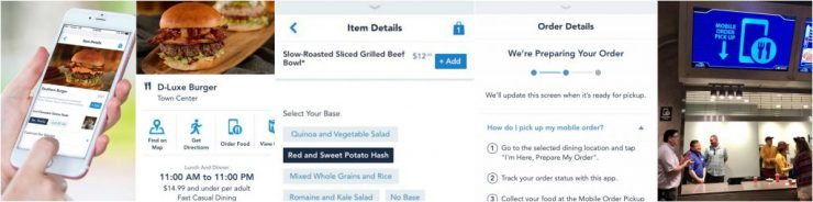 Bij een aantal restaurants kun je eten bestellen via de app met behulp van je MyDisneyExperience account. Zo hoef je minder lang in de rij te staan, je haalt je eten af bij de afhaalbalie. Je hebt hier wel een creditcard voor nodig, maar het scheelt een heleboel tijd.
