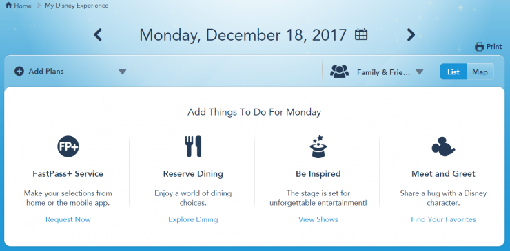 Via de website maken we een MyDisneyExperience account aan. Hier kun je jouw bezoek personaliseren. Wil je alvast een reservering maken voor één van de restaurants, dan doe je dat hier. Ook het aanvragen van FastPasses gaat via je MyDisneyExperience account. Vergeet niet om de app van Walt Disney World te installeren, zodat je jouw schema altijd bij de hand hebt. Daarnaast krijg je notificaties van alle ingeplande activiteiten.