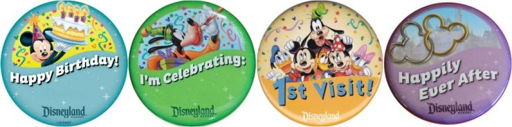 Wist je dat je in alle parken buttons kunt krijgen als je iets te vieren hebt? Deze buttons kun je gratis ophalen en laten personaliseren met je naam op verschillende punten in het park. De meeste souvenirswinkels hebben de buttons en er zijn een aantal Guest Services waar je ze ook kunt krijgen. We hebben ook losse kraampjes met de buttons gezien waar een medewerker bijstaat voor het personaliseren.Je kunt kiezen uit de volgende buttons: