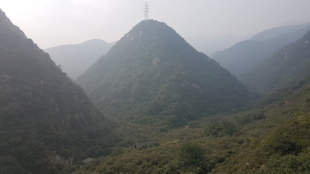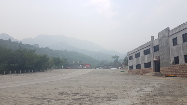 Na een tijdje zien we erg weinig auto’s en rijden we door een lange, donkere tunnel. Na de tunnel links af en een stukje de berg op. Eerst een plaspauze. Buiten het busje merken we al dat het wat frisser is en dat we niet meer in Beijing zijn. Een koffie is erg duur, dus die slaan we over (wordt trouwens ook niet gepromoot om te kopen, dus dat scheelt).