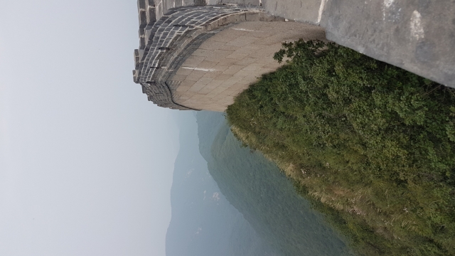 We rijden weer verder en we stoppen bij een leeg parkeerterrein waar we er uit moeten. De gids praat redelijk Engels en vertelt in de derde persoon waarom we op dit stukje van de muur zijn en wat de betekenis is. Veel kunnen we er niet van maken, zo onduidelijk is het. Het enige wat we begrijpen is dat we 3 uur de tijd hebben om over de muur te lopen. Er zijn 7 torens en die moeten we kunnen halen (…).
