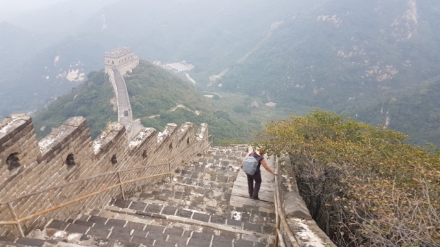De Chinese muur is toch wel iets wat je moet bekijken als je in de buurt bent. De 800 kilometer lange muur is echt prachtig om te zien, wat minder om te lopen. Vele stukken zijn vernieuwd voor de toeristen, maar via ons hostel hebben we een tour gevonden die ons naar een stukje muur brengt waar geen enkele toerist te vinden is, The Remnant Great Wall at Badaling. En dat er geen toerist te vinden is, is ook echt zo.