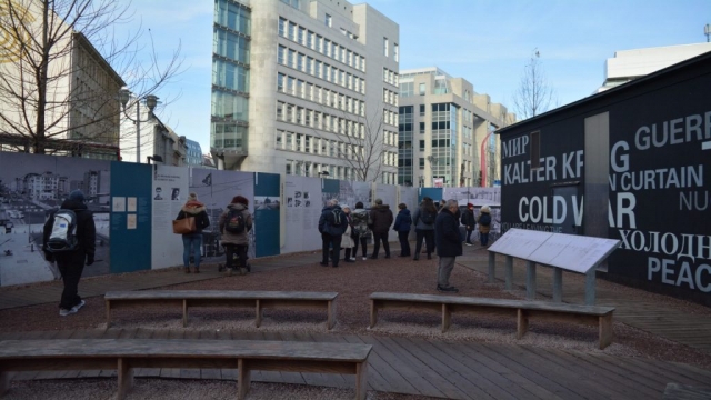 Als we naar de overkant kijken zien we een muur met allemaal teksten en foto’s. We gaan een kijkje nemen. Binnenin staan de hele geschiedenis van de muur en Checkpoint Charlie – 1961 tot 1989 – in woord en beeld. Van het moment dat de muur gebouwd werd (met professioneel materiaal) tot het neerhalen er van (met de buurman op zijn sandalen met een beitel). Het geeft een goed beeld hoe het moet zijn geweest. Ook worden er persoonlijke verhalen gedeeld waarin met vertelt hoe ze hebben gezien hoe iemand probeert te ontsnappen naar het westen. Ook staat er een heel stuk muur.