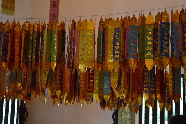 Na het ijsje rijden we terug naar Wat Chedi Luang. Het is stipt 3 uur in de middag als we aankomen. We lopen naar het bord “monk chat” en een andere man komt naar ons toe. Hij vraagt of we willen praten met een monnik. We bevestigingen dit en we worden naar de enige monnik die er zit gebracht. Het is een man van 28 (maar geloof me, hij zou zo 18 kunnen zijn). Hij zit rustig te lezen in een soort stripboek. Hij gebaard ons te zitten na een begroeting en we beginnen te praten. Zijn Engels is best goed, maar soms wat slecht verstaanbaar. We praten over de verschillen tussen Thailand en Nederland, dat hij afgestudeerd is op filosofie en daar nu les geeft aan deze universiteit. We hebben het ook over het vreemde fenomeen dat toeristen (vooral dames) de kleding voorschriften niet te serieus nemen en dat het mij verbaast hoeveel mini rokjes, strakke topjes en andere zwemkleding-achte kleren gedragen worden in de tempels. Het stoort hem niet dat ze de voorschriften niet volgen, maar wel dat het de monniken kan storen. Hij is er vrij open in en geeft als voorbeeld dat als hij aan het mediteren is hij afgeleid kan worden door een mooie, sexy vrouw… Maar eigenlijk kan dat ook zonder de bovenstaande omschrijvingen van “kleding” .