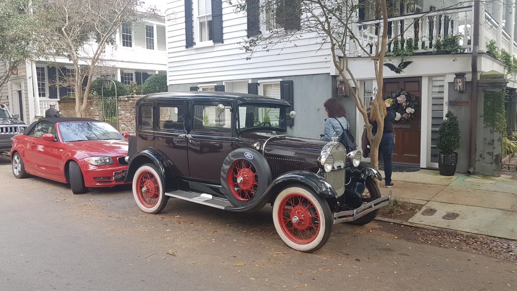Net als New Orleans heeft Charleston ook een French Quarter, een fijne buurt om door heen te wandelen. Er staan prachtige authentieke woningen die er duidelijk al jaren staan. De straten zijn hier en daar nog steeds gemaakt met kinderkopjes. Naast de woningen kun je af en toe een kijkje nemen in de enorme tuinen die zich achter de gebouwen bevinden. Het is geen straf om hier te moeten wonen. Als we een stuk verder zijn zien we zelfs een echte oude Ford, die veel aandacht trekt. Het is net alsof we een eeuw terug in de tijd zijn gegaan. We genieten van de huizen, de sfeer, de natuur en de leuke, kleine doorkijkjes die je hier en daar kunt spotten.