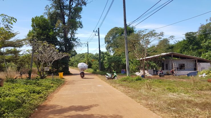 Koh Mak is een klein eiland waardoor ze toch wel op zichzelf zijn aangewezen. Tijdens onze eerste rit naar het resort toe kwamen we langs de afvalverwerkingsplaats. Maar hier wordt ook veel gerecycled en dan voornamelijk plastic flessen. Verschillende keren kwamen we mannetjes op volgeladen scootertjes tegen. Nu zijn ze hier in Azië sowieso heel inventief met veel spullen meenemen op scooters, maar dit hadden we nog niet eerder gezien. Op de foto zitten er trouwens twee mannen verstopt onder al dat plastic, de ene rijdt en de ander houdt de flessen vast.
