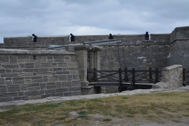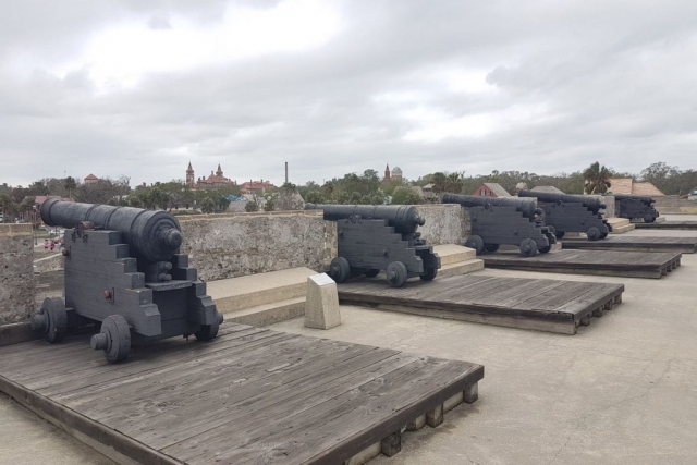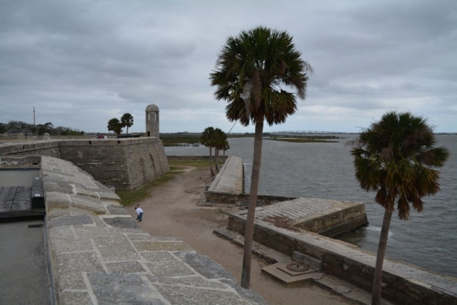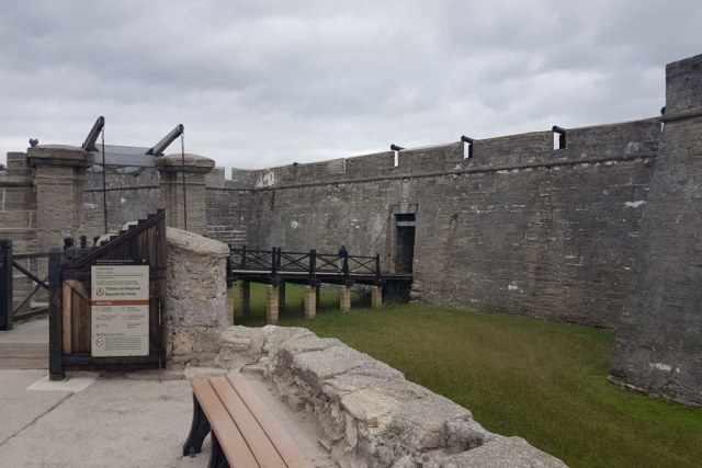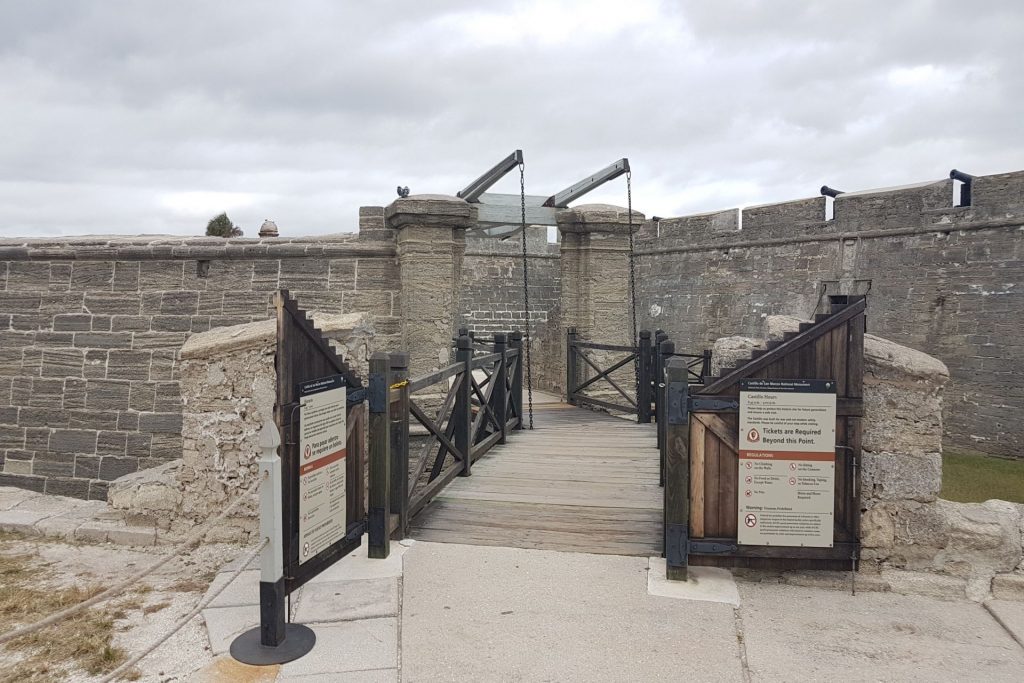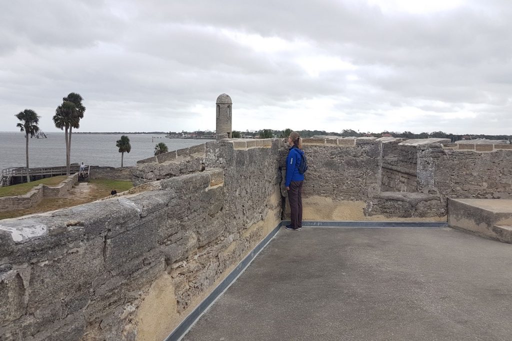 Een nieuwe dag. Het weer is nog iets minder geworden: donkere wolken aan de horizon. Maar dat mag de pret niet drukken. We pakken de auto en zetten koers naar het fort van St. Augustine, Castillo de San Marcos.