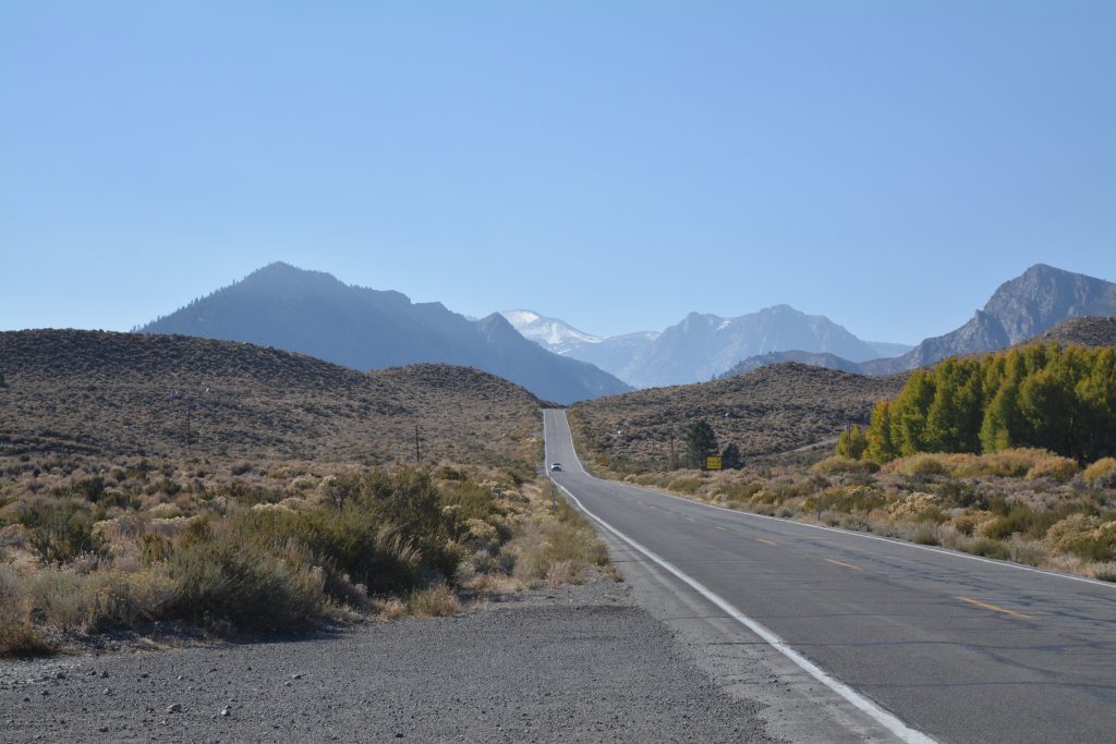 Na een paar dagen in de stad is het hoog tijd om onze nieuwe auto uit te testen in een ander gebied. We verlaten Las Vegas en gaan op weg naar Yosemite National Park. De eindbestemming voor vandaag is Mammoth Lakes, een klein plaatsje wat bij de toegangsweg naar Yosemite National Park ligt. Het is druk de stad uit en dat is even een beetje spannend, want de laatste keer dat we stil stonden voor een stoplicht zag iemand ons over het hoofd. Maar al snel zijn we de stad uit en verandert de weg weer in de o-zo-fijne bijna verlaten snelweg die we ondertussen al goed kennen. We volgen US Route 95 tot aan Tonopah en gaan dan richting het westen over de US Route 6.