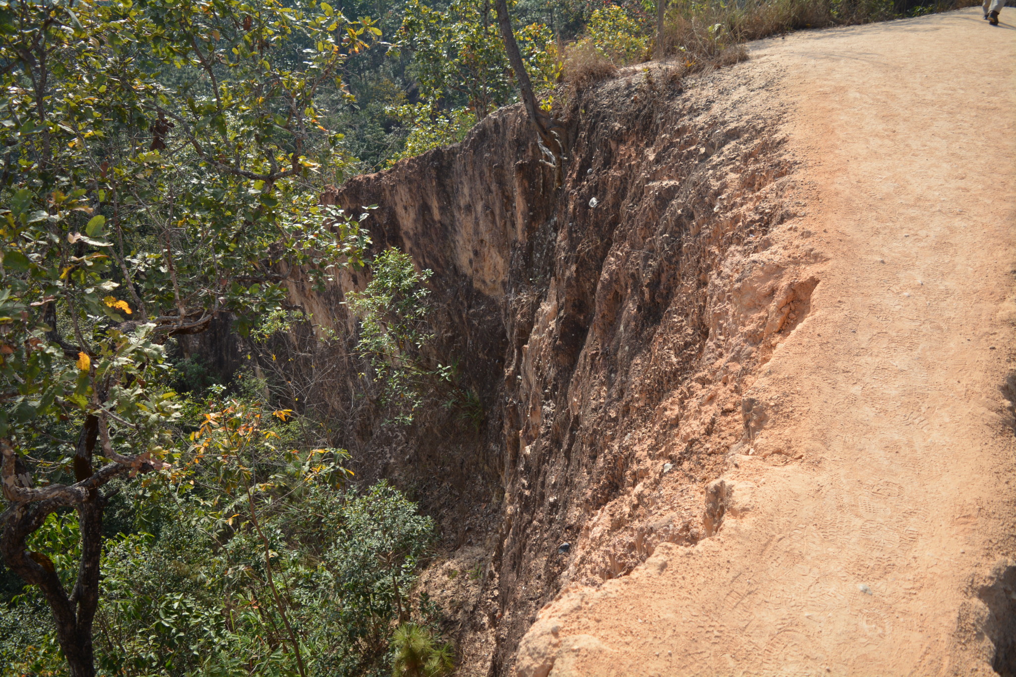 Het eerste uitzicht is zeker de moeite waard! Smalle wegen met daarnaast afgronden van een meter of 50, een prachtig gezicht. En natuurlijk kan Kenji het niet laten om als een echte berggeit op dat ene supersmalle stukje (met prachtig uitzicht) te gaan staan… Als mijn hartslag weer wat gekalmeerd is gaan we een stukje lopen. Het is wel oppassen geblazen, want de grond is droog en je glijdt makkelijk uit. En dan is de weg naar beneden best lang. Gelukkig is het nu rustig en kunnen we op ons gemakje rondlopen. We trekken wat verder de Canyon in totdat we bij een afdaling komen die ik niet aan durf. Ik kijk toe hoe Kenji afdaalt, over een half vergane brug klimt en uiteindelijk aan de overkant komt. Zelf loop ik via het makkelijke pad weer terug naar het beginpunt.