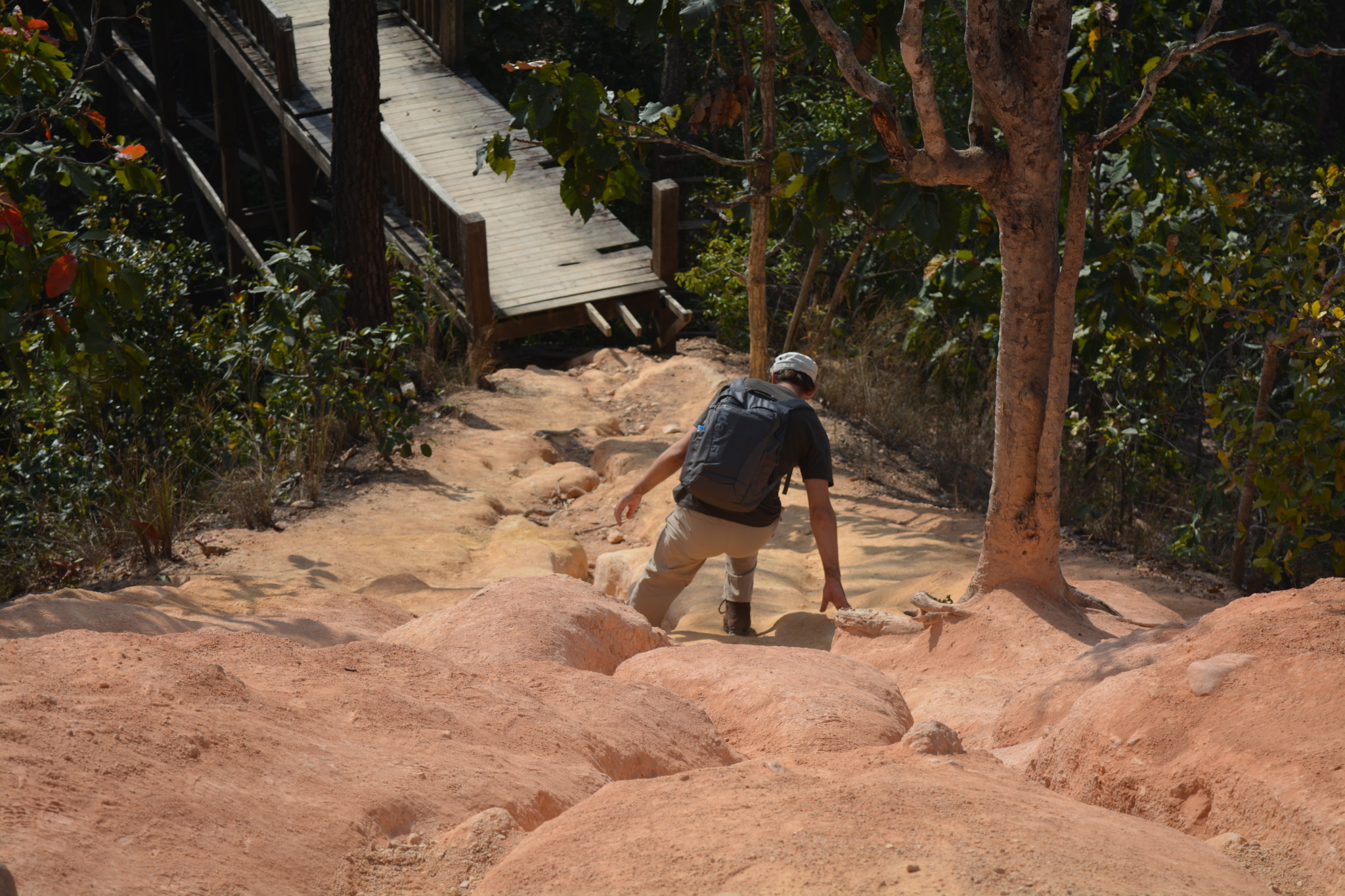Ondertussen is het al wat drukker geworden. We lopen via de trap weer naar beneden en nu is er al wat meer te beleven. Als we later op de dag nog een keer langs de Canyon rijden staat de parkeerplek vol met busjes. Het is dus echt een aanrader om aan het begin van de dag te gaan, zodat je op je gemak kunt genieten van Pai Canyon.