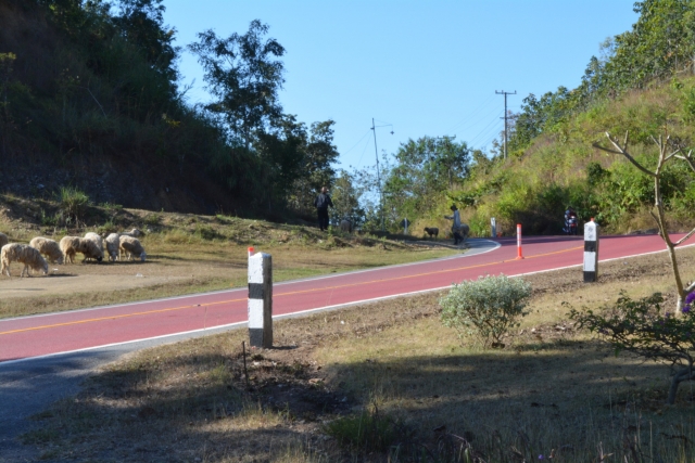 Onderweg komen we nog wel wat wegwerkzaamheden tegen, maar dat kleine stukje mag de pret niet deren. Verder komen we een aantal pickups tegen en wat verdwaalde toeristen op scooters.
