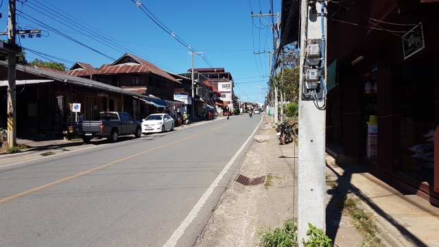 We rijden rustig Khun Yaem in. We kijken op de klok en we zijn flink opgeschoten. Volgens de kaart zouden we rond 12:30 aan moeten komen in Khun Yaem, maar het is 11:30. We rijden wat rond en zo spannend is het hier niet. Veel lokalen die bezig zijn met de dagelijkse dingen en een paar toeristen (totaal 5 geteld, excl. ons).