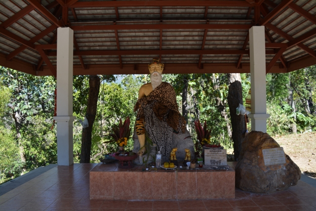 Na een tijdje zie ik door de bocht een enorm hoge tempel. Er is ook een koffie zaakje, Mae La Noi, waar we even gaan opwarmen met hete cappuccino. Hier hebben we ook een enorm mooi uitzicht over een dal met velden, huizen en bergen. Er komen ook wat Franse toeristen op scootertjes. Ze willen Black Tea, maar het arme meisje achter de balie spreek slecht Engels en ze snapt het niet helemaal. Dat snappen de Fransen dan weer niet. Wat ze uiteindelijk hebben besteld weet ik niet, maar ze bleven wel lang hangen.