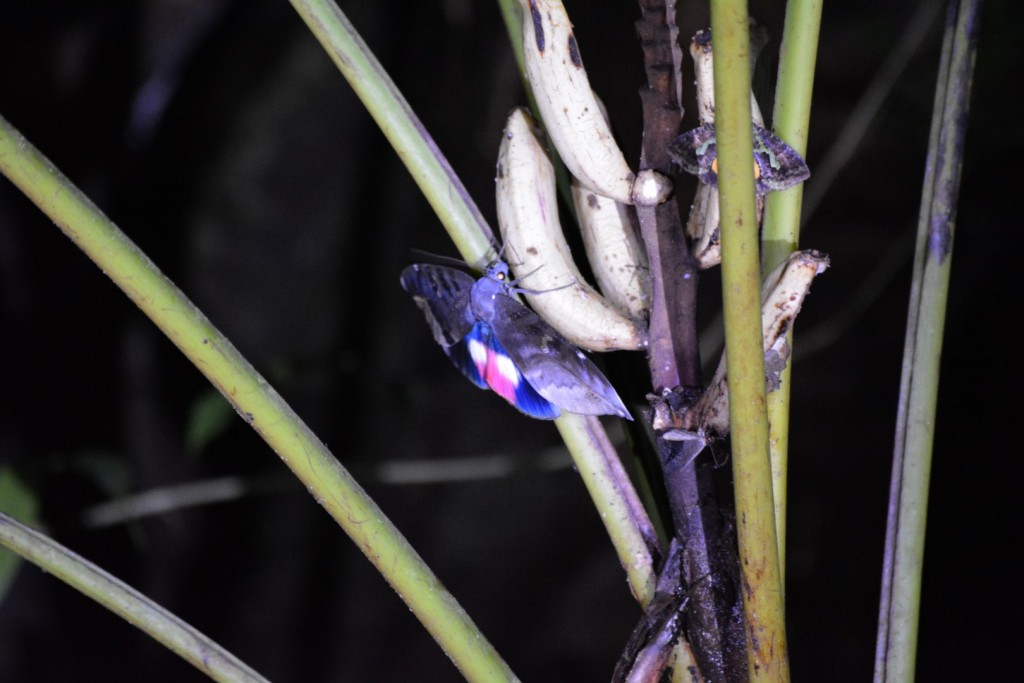 De combinatie tussen het donker, de geluiden van alle beesten en de flitsen geeft een spannend gevoel. Je zit midden in het regenwoud, hier zijn wij, de mensen, niet de baas.