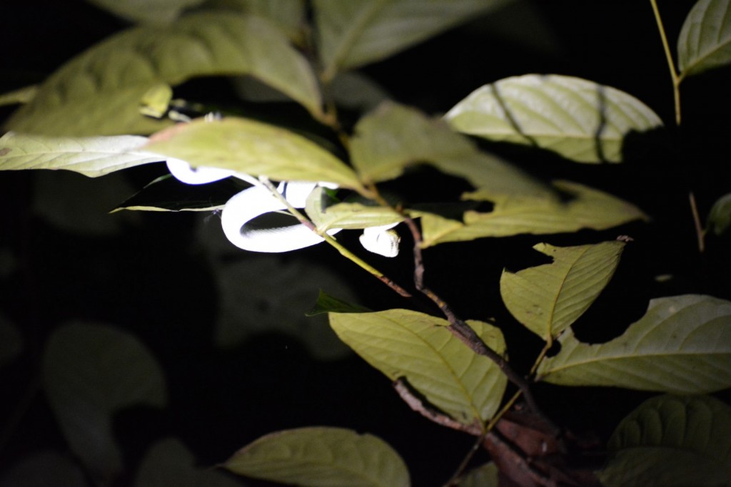 Er worden een paar basis regels uitgelegd die specifiek voor deze nachtwandeling gelden en dan gaan we lopen. Er wordt na de eerste stap al driftig gezocht naar de beestjes, maar aangezien hier ook bungalows staan voor gasten, zal hier weinig excentrieks te vinden zijn.