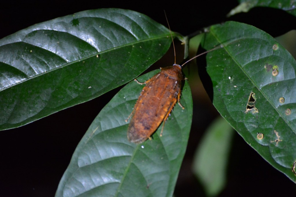 Door de hevige regenval is het normale pad voor deze nachtwandeling overstroomt en gaan we daarom de Botany Loop voor een deel volgen. Deze hebben wij bij daglicht al een keertje gedaan. Onderweg er naar toe worden de zaklampen overal op geschenen. We zien een paar duizendpoten, hammerhead wormen, kleine schorpioenen tussen de kieren van het hout, gekko’s, spinnen en nog veel meer.