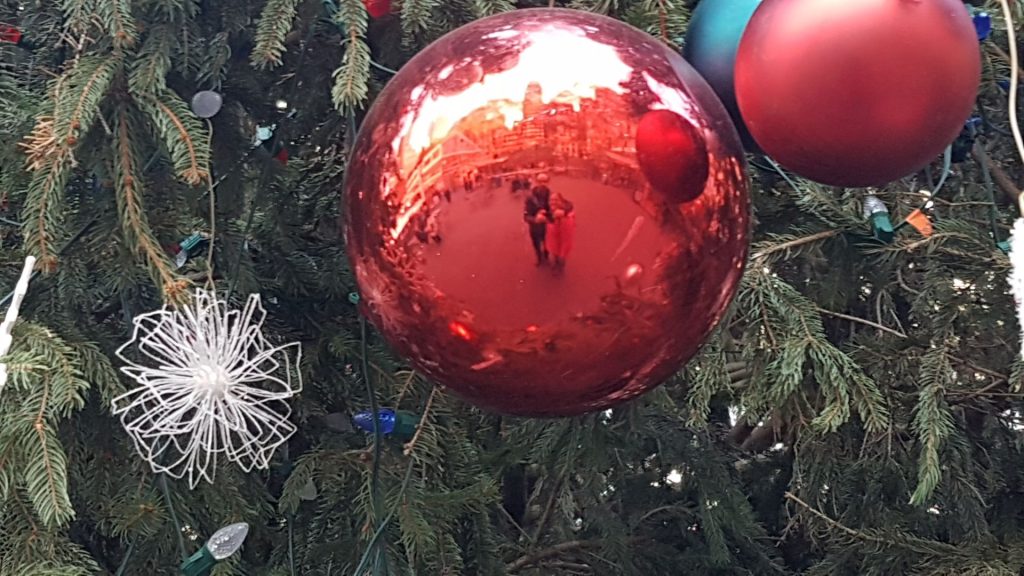 Er is een mogelijkheid om naar boven te gaan, maar dat slaan we even over. We bekijken de prachtige hal en de kerstboom. We maken wat foto’s en we lopen weer de kou in.