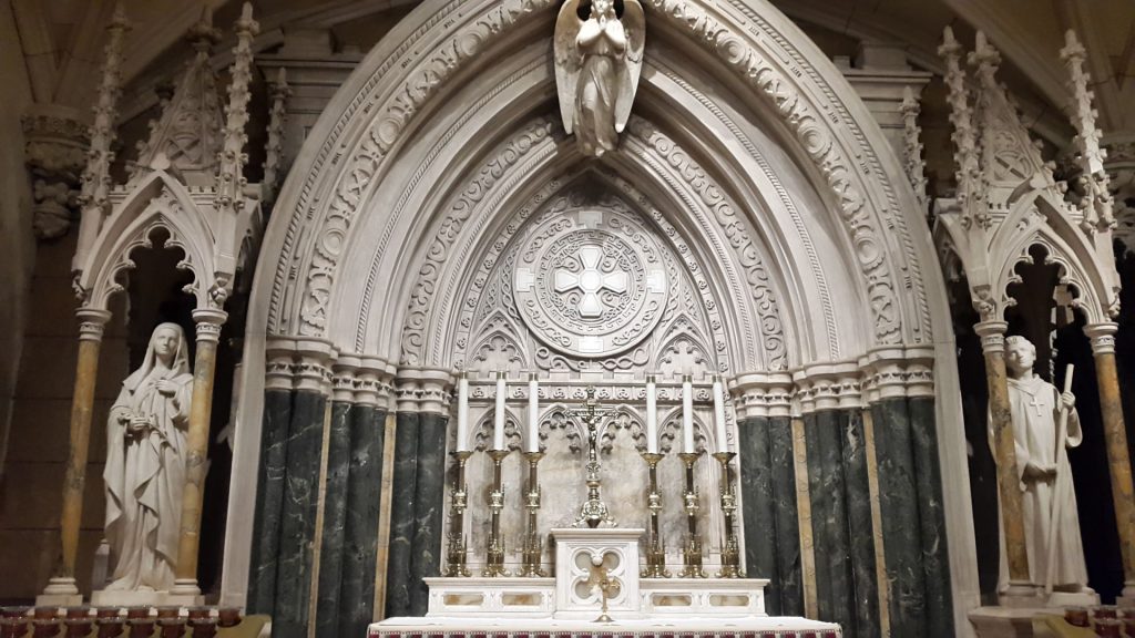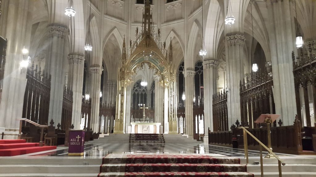 Het wordt inmiddels donker en we hebben nog 1 stop voor vandaag: St. Patricks Cathedral. Een enorme kathedraal in het midden van New York. Het is een van de oudste katholieke kerken in New York. In 1866 werd de eerste versie verwoest door een brand. In 1868 werd de nieuwe, hedendaagse, kerk weer opgebouwd. De kerk heeft twee orgels, beide 9838 pijpen.