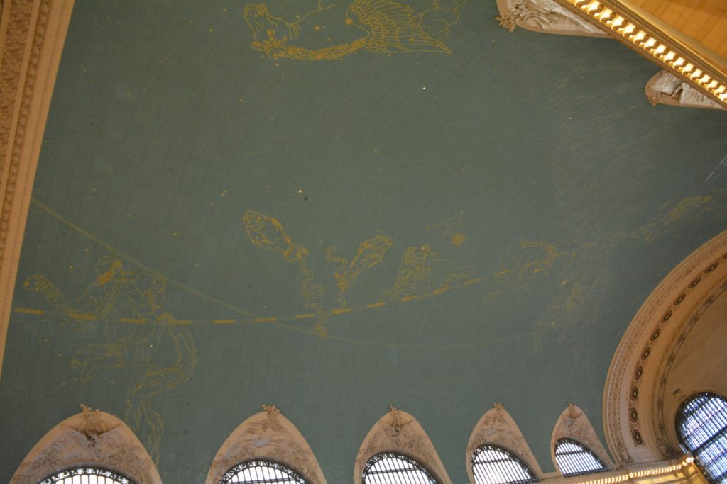 De grote hal is precies zoals je zou verwachten als je de films hebt gezien. Groot, authentiek, druk, ouderwets en mooi. Het lijkt wel of je terug in de tijd gaat. Het eerste wat we doen is omhoog kijken naar het dak. En ja, daar zijn inderdaad de sterrenbeelden in verwerkt.