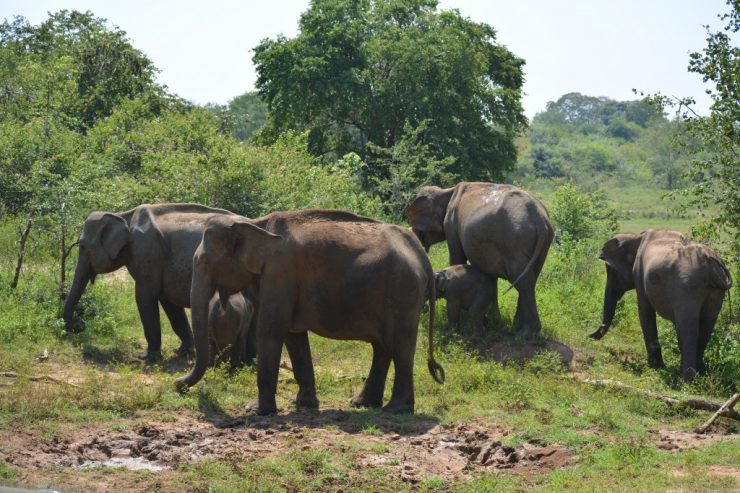 Natuurlijk kunnen ook de olifanten in Udawalawe niet ontbreken. Hoewel deze safari de boeken in gaat als de pauwen safari waren we toch blij dat we tegen het einde een olifanten kudde van dichtbij konden bewonderen. Heel bijzonder om te zien hoe de kleine olifanten door de rest beschermt werden tegen, wel, ons.
