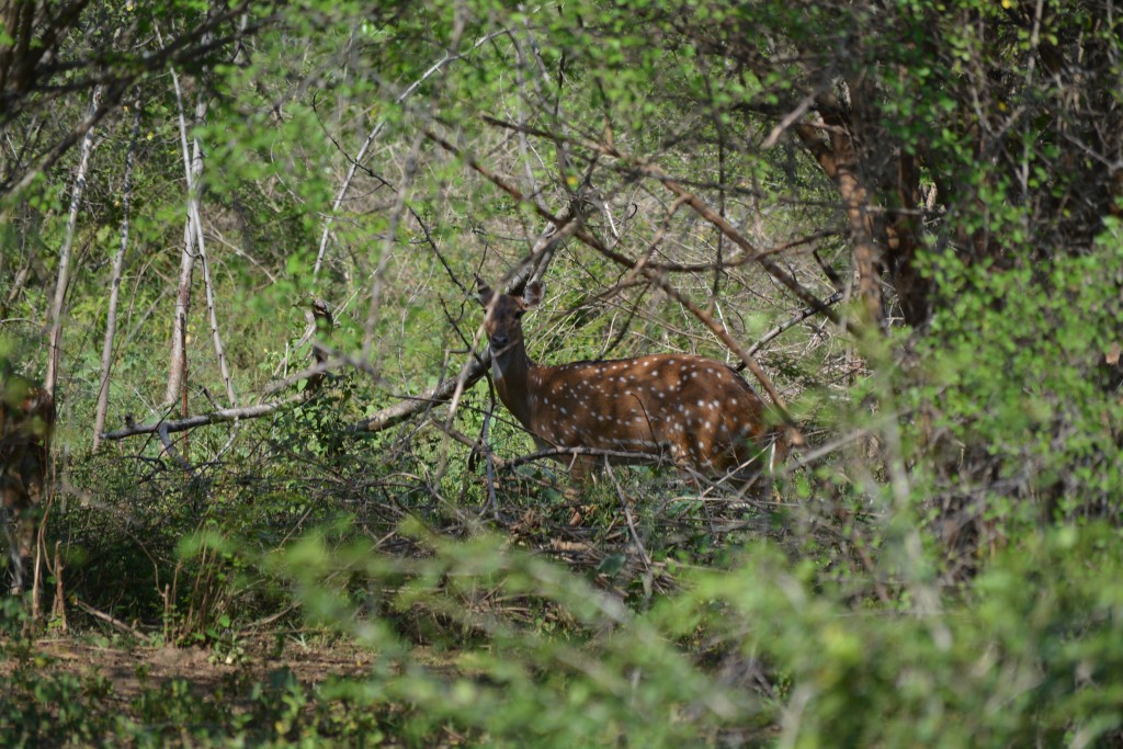 Na deze trieste confrontatie met de andere kant van de natuur zijn we er des te meer op gebrand om meer olifanten te spotten. Maar ze hebben zich goed verstopt en voorlopig moeten we het met de andere dieren doen die hier in het park leven. Zo zien we herten, nog meer waterbuffels, heel veel verschillende soorten vogels, aapjes, een mangoest en een everzwijn, schildpadden, reptielen, krokodillen. Er schijnen hier ook luipaarden te zitten en dus kijken we goed in alle bomen, maar waarschijnlijk liggen ze allemaal al heerlijk te slapen.
