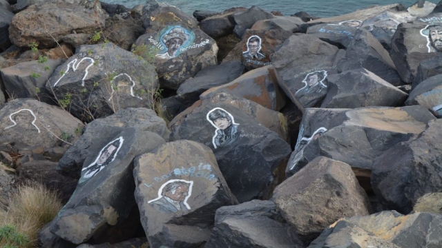 Er is totaal geen informatie over deze stenen en ik heb lang op internet moeten zoeken om te ontdekken wat het nou eigenlijk is. Het blijkt dat de artiest Stoyko Gagamov een aantal jaar geleden hiermee is begonnen. Het is een kunstwerk om de golfbreker een beetje op te vrolijken.