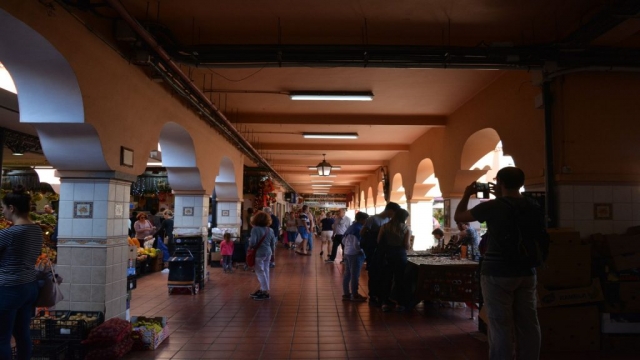 We zien op de kaart dat we makkelijk naar het oude centrum kunnen wandelen. Onderweg maken we een stop bij de Mercado De Nuestra Senora de Africa (Markt van onze lieve vrouw van Afrika). Een leuke, gezellig, middelgrote markt met allerlei kraampjes en heel veel verschillende koopwaar. We zien een groenteboer, viskraam, veel brood en kaas en nog veel meer. Ideaal om boodschappen te doen. Ook vind je hier veel kruiden die je niet zomaar in de supermarkt kunt kopen.