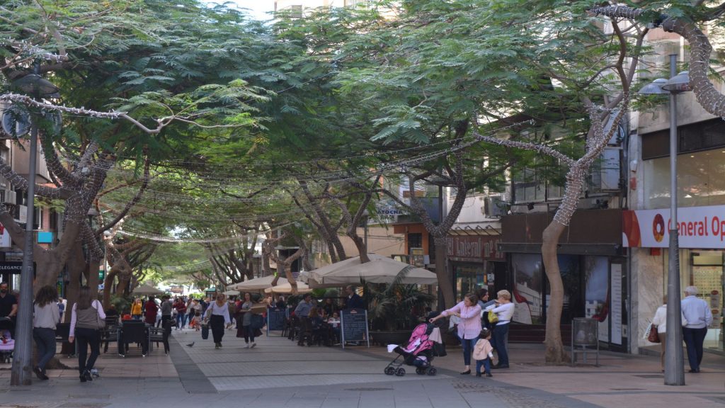 Hier zijn ook veel meer toeristen te vinden. Overal zijn leuke, kleine cafeetjes en cafetaria’s. Mensen zitten van het mooie weer te genieten of bekijken de oude gebouwen die je overal ziet. In de oude gebouwen zitten vaak de luxere winkels, zoals Zara, Mango, Victoria’s Secret en meer. Ook veel juwelierszaken. Je kunt hier alle kanten op.