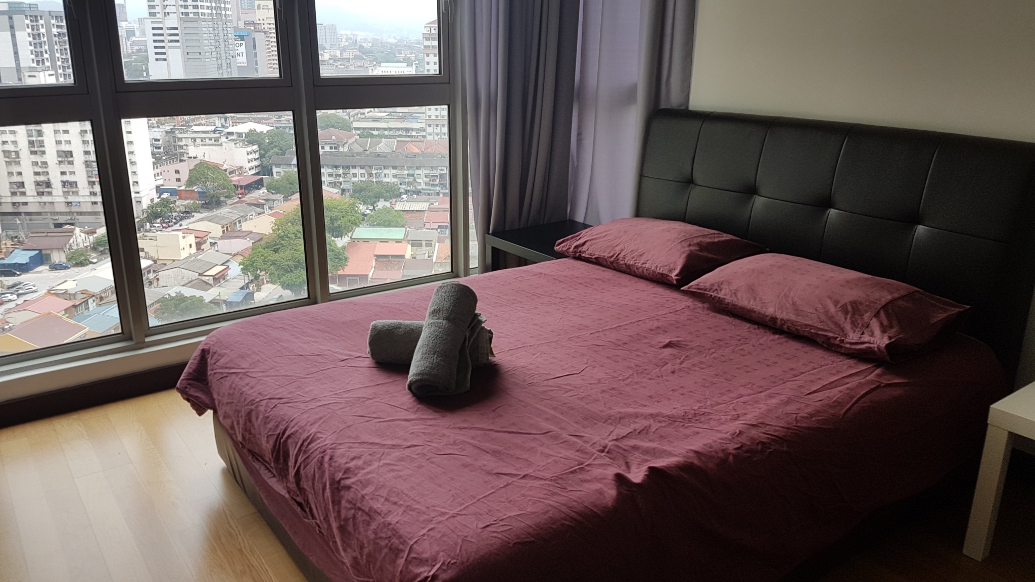 De volgende ochtend reizen we door naar onze echte accommodatie voor ons verblijf in Kuala Lumpur, een appartement wat we hebben geboekt via AirBnB. Het blijkt alleen een uitdaging om er te komen, want zowel Uber als Grab geven uiteindelijk het resultaat dat er geen chauffeurs beschikbaar zijn. Het is ook nogal een afstand die we moeten overbruggen van dit deel van de stad naar even boven het centrum. Uiteindelijk laten we het hotel een taxi bellen. De chauffeur weet niet precies waar hij heen moet, maar gelukkig hebben we een telefoonnummer van onze host. Hij belt even en dan is het duidelijk en gaan we rijden. Na een klein uurtje rijden schiet de taxichauffeur een wat vervallen uitziende oprit op die omhoog loopt. Als hij stopt kijken we onze ogen uit, moeten we hier wel zijn? Prachtig hoge gebouwen met hele mooie fonteinen ertussen. Dit voelt een beetje als boven ons budget en “we hadden even iets anders aan moeten trekken” schiet door mijn hoofd.