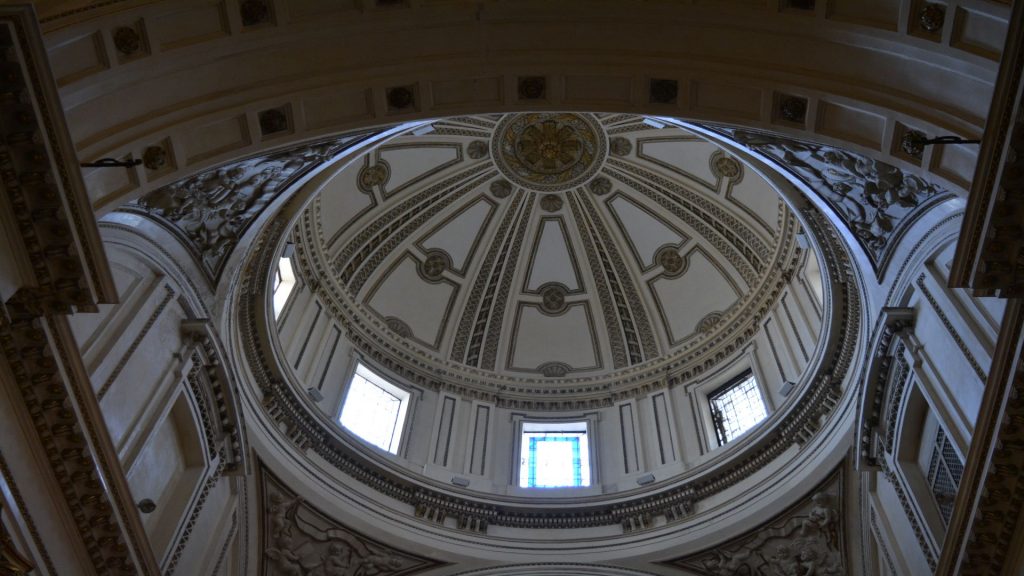 Als je binnen komt ziet het er best “simpel” uit. Alleen het altaar is enorm versiert en het licht weerkaatst van het bladgoud en andere glinsterende versieringen. Maar als je aan de zijkanten kijkt zijn er, zoals bijna in elke kathedraal, nissen voor de verschillende heiligen en belangrijke mensen uit de geschiedenis. We krijgen een mooi plattegrondje met nummers, die overeenkomen met de audionummers van onze audiotoer. We lopen ieder een andere kant op. Ik begin aan de rechterkant en luister hier en daar naar het verhaal. Wat ik jammer vind is dat de meneer op het elektronische bandje heel veel verteld over de architectuur en niet zo zeer de geschiedenis. Maar vooruit, het is gratis.