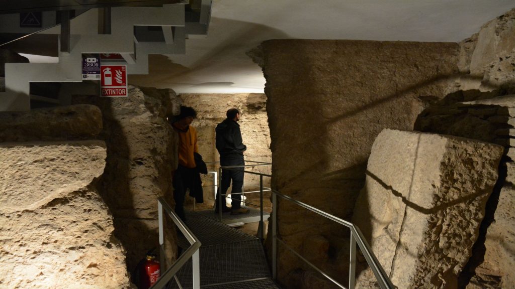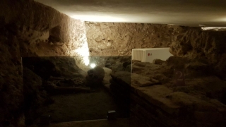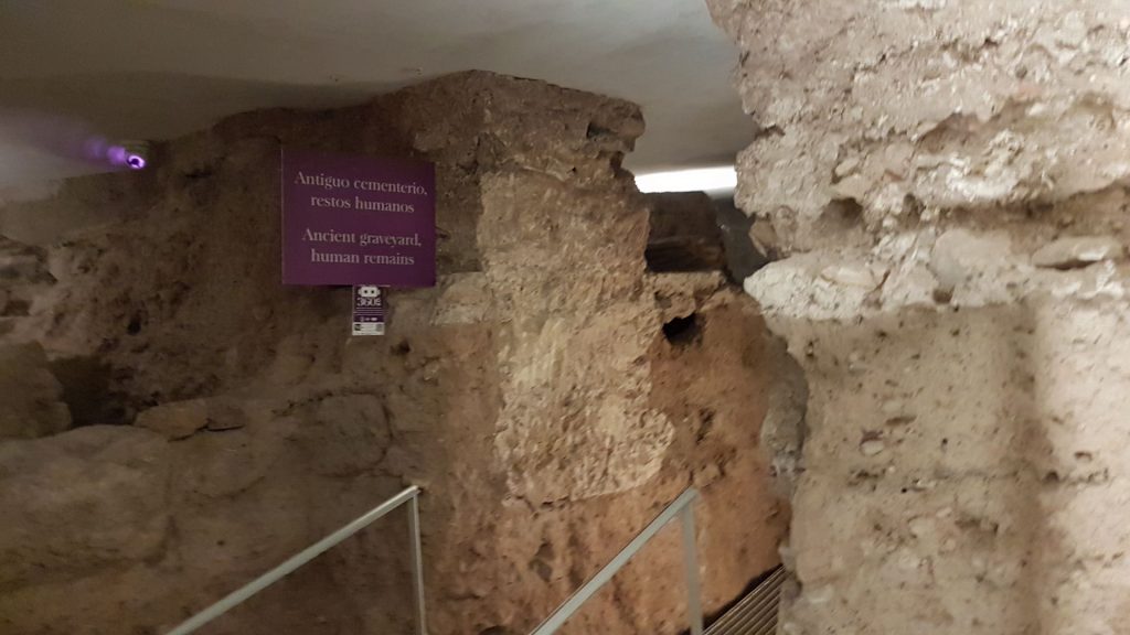 Ik loop nog wat rond en zie dan Rieneke bij het altaar staan. Ze heeft nog niet achter het altaar gekeken en is nog niet bij het museum geweest, dus wacht ik daar op haar. Ze komt wat verbaast terug. We lopen het museum in. Nou zijn wij niet echt van de kunst enzo en we zijn ook snel klaar. Het enige wat zeer interessant is zijn de opgravingen onder het museum. Hier zie je de oude fundering uit de Romeinse tijd. Ook kun je hier en daar een schedeltje zien liggen. Door de omstandigheden onder de grond mag je hier maar 15 minuten rondlopen. Daarna wordt het aangeraden om weer omhoog te klimmen.